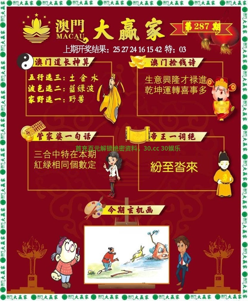 287期:★两波中特★╠蓝红╣开:猴34准 |